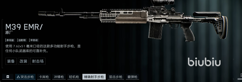设计:7.62×51mm半自动卡宾枪,单发伤害33点,3-4枪毙命,射速654RPM。