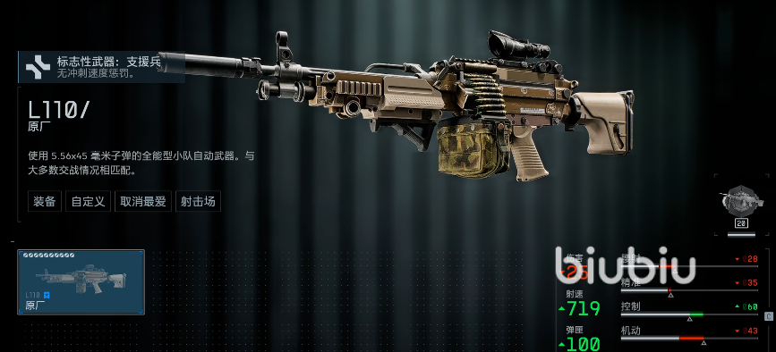 特性:脚架趴射后坐力归零,200发弹匣持续封锁通道,但移速惩罚高达30%。