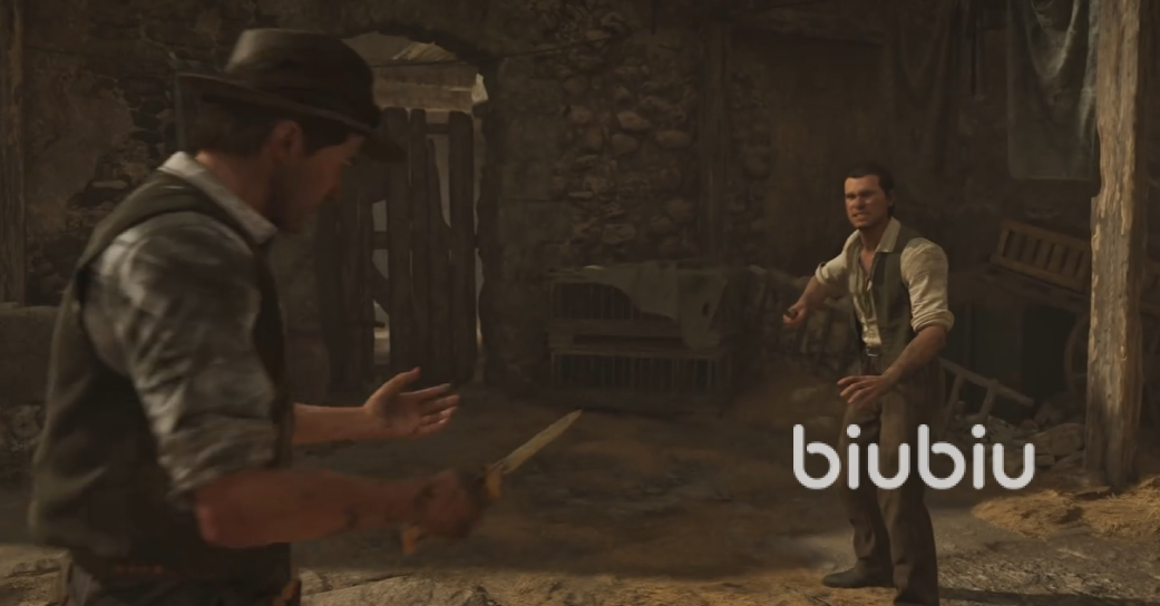 拖里西的手下前来追击,阻止主角逃跑,开启了一场近战,双方都是用小刀战斗,注意准心要对准,快速进攻。当对手挥刀的时候注意躲避。这段战斗是夹杂着剧情的,对战节奏会被中断,时刻保持警惕切回战斗的时候立马进行攻击。