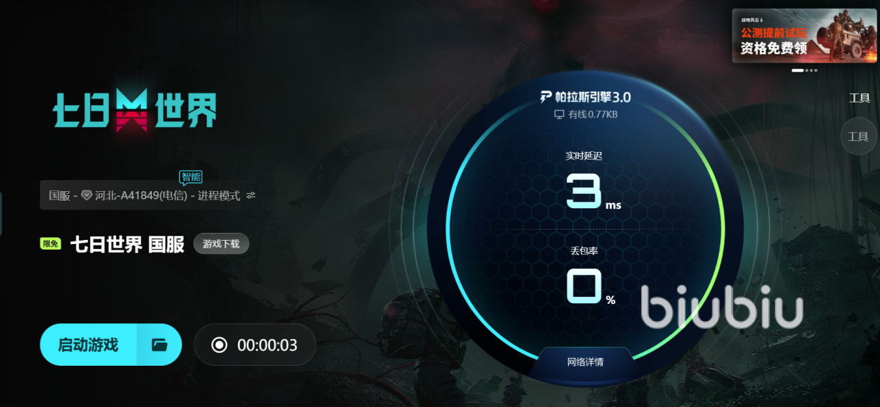 在解决掉七日世界闪退的背后因素后,如果想要获得一个流畅的游戏体验,不要忘记biubiu加速器的存在,新用户注册后可获得24小时免费时长,输入【biubiu不卡顿】可以兑换72小时免费时长,96小时的免费时长,不但可以让大家体验到这个加速器平台的加速效果,还可以降低大家的试用成本,biubiu加速器最新引入先进的帕拉斯引擎 3.0,它能够有效维持游戏网络的稳定连接,与冠军选手Aixleft展开合作后,让大家专注于游戏中的团队配合,感受游戏带来的乐趣。