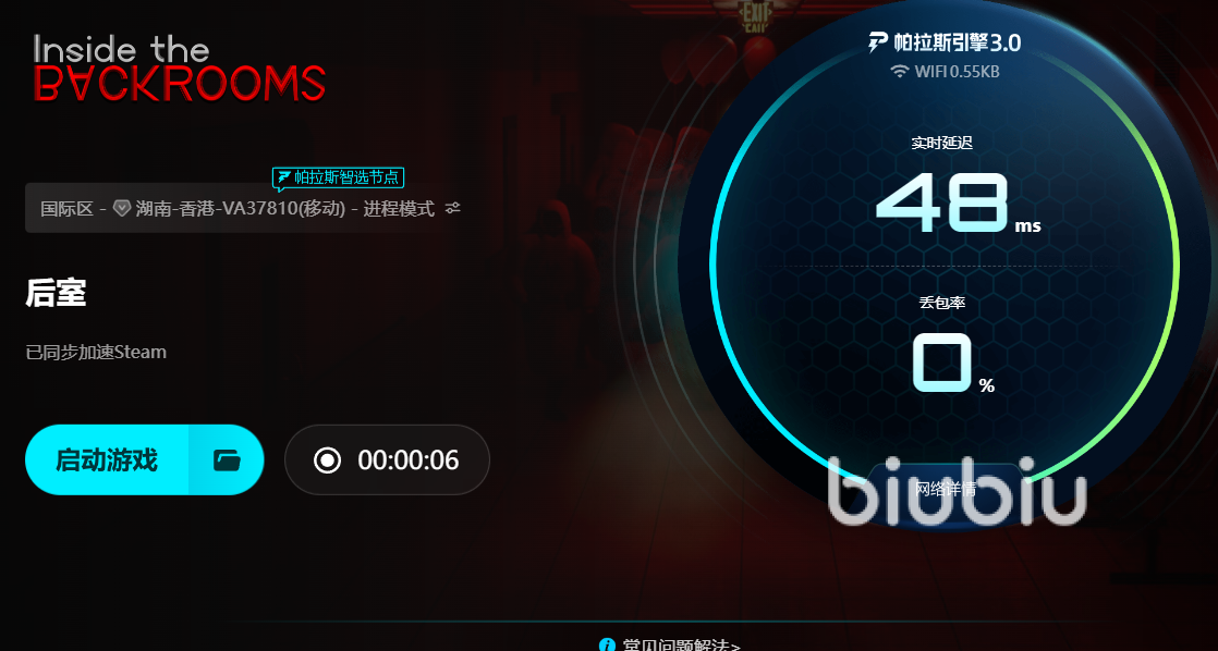 当《后室》需要进行多人联机时,网络环境是否稳定对解决闪退问题影响很大,而biubiu加速器能为玩家提供靠谱的网络保障,新用户注册后能得到24小时免费时长,输入【biubiu不卡顿】还能再兑换72小时免费时长,便于玩家免费体验它的加速作用,biubiu加速器融入了帕拉斯引擎3.0,并且和冠军选手Aixleft共同合作完成了重大升级,它可以降低数据传输时的延迟情况,保证游戏联网过程平稳流畅,让玩家能沉浸式地感受那份恐怖氛围。