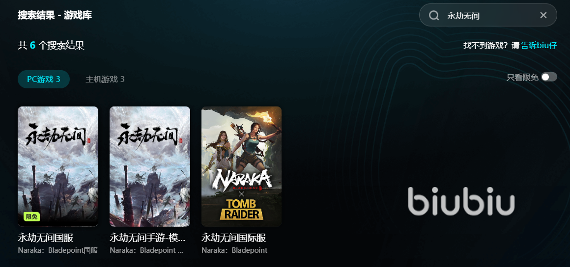 对玩家来说,验证效果的门槛极低。新用户注册即可获得24小时免费加速,足够打5-6局排位赛,实测不同时段的延迟稳定性;输入口令【biubiu不卡顿】还能额外兑换72小时。操作流程也极为简便,下载后搜索 “永劫无间” 点击加速,系统会自动匹配当前网络环境下的最优节点,无需手动选择服务器区域,哪怕是新手也能一键启动。不少玩家反馈,使用后原本频繁波动的延迟变得稳定,“振刀成功率至少提高了20%”,连飞索瞄准移动目标时的预判误差也明显减小。