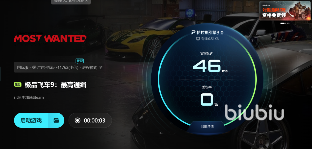 在解决极品飞车9 进不去游戏的问题时,网络环境的稳定性就显得尤为重要,biubiu加速器则可以稳稳托住大家的竞速梦,新玩家注册就能解锁24小时免费体验,输入【biubiu不卡顿】,还能再获得72小时加速时长,零门槛感受它的加速效果,这款app拥有升级后的帕拉斯引擎3.0,加上冠军选手Aixleft的深度参与,它能智能避开拥堵节点,把延迟和波动压到最低,有了这层保障,游戏启动时不再被网络困扰,让大家全身心投入游戏竞速中。