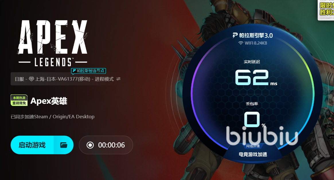 在Apex的战场上,每一次闪退都是对战术节奏的致命打击。当网络传输的隐性障碍被彻底清除,你才能专注于滑索突袭的时机、大招释放的角度,让每一次团队配合都完整落地。毕竟,这款游戏的魅力在于瞬息万变的战场博弈,而稳定运行是享受这一切的前提——这正是biubiu加速器能赋予玩家的底气。