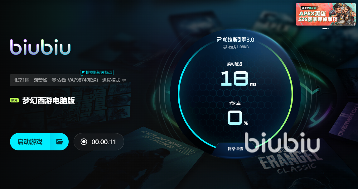 而作为国民级网游,梦幻西游凭借精美的画面、幽默的人物对白和策略性表现,吸引了超多玩家长期在线体验,然而,由于服务器时常呈现爆满,尤其是在高峰时段,玩家经常遇到“进不去服务器”的问题,严重影响了游戏体验,所以我们这个时候就要去打开biubiu来帮自己进一步稳定了。