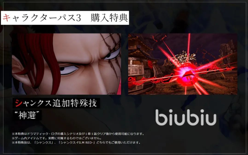 香克斯“神避”招式:购买通行证可解锁红发香克斯的新特殊技“神避”(Kamusari/Divine Departure),该技能适用于其多套造型,大幅强化战斗表现。
