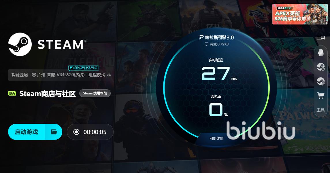 好了,上述便是诅咒之岛闪退的全部内容了,对于广大玩家而言,若是到时有遇到延迟很高,或者是掉帧与卡死等问题可是很难受的,所以我们还需去提前打开biubiu,通过它就能帮助自身有效来优化网络,确保不至于出现卡死或者是掉帧等方面问题哦。