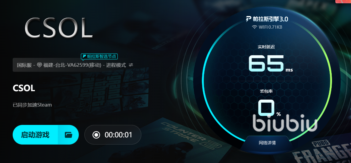 这些网络层面的问题,靠重启路由器或关闭后台程序往往只能缓解一时,要从根本解决,得优化数据传输的 “通路质量”。biubiu加速器的帕拉斯引擎3.0正是为此设计,当发现CSOL服务器的连接路径出现拥堵时,会在0.1秒内切换至备用专线。与冠军选手Aixleft的合作则让优化更贴合实战——职业选手在训练中发现,狙击枪开镜瞬间的延迟最影响命中率。这对于网络要求和游戏体验要求较高的玩家来说十分有利。