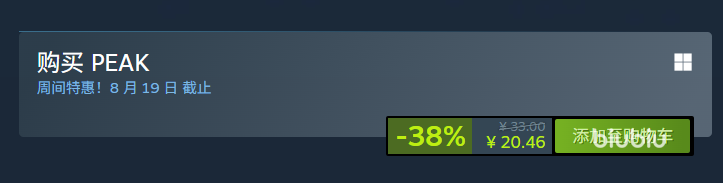 2025年08月12日 17:16 来源:白起又烈焰马《PEAK》2.0版本“平顶山”更新于2025年8月12日正式上线,可以说是这款合作攀爬冒险游戏迄今最大的内容扩充。许多小伙伴已经迫不及待想要知道PEAK2.0版本更新内容是什么了,那本次更新以沙漠生态为核心,还首次了开启周间促销,价格降至20.46元(原价33元),并联动Discord推出限时任务(8月11日-17日),下面一起来具体内容看吧。