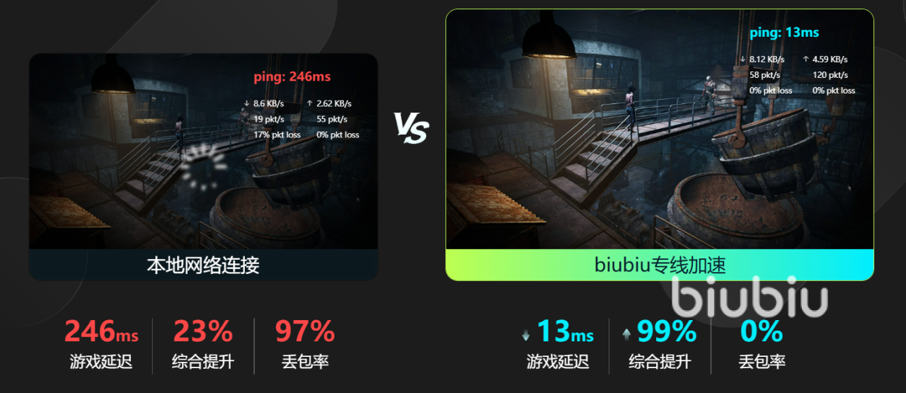 想象一下,在紧张的追逐战中,作为屠夫的你正在全力以赴地追捕一名逃生者,眼看就要扑到她的背后,结果网络卡了一下,直接错过了击打的时机。又或许你是逃生者,正准备飞奔跳窗,但突然掉线,错过了关键的逃脱时机,真的是令人抓狂。为了避免这些尴尬的情况,biubiu加速器是你的好选择。它不仅能够有效减少延迟,还能确保你在游戏中的每一秒都流畅无阻。