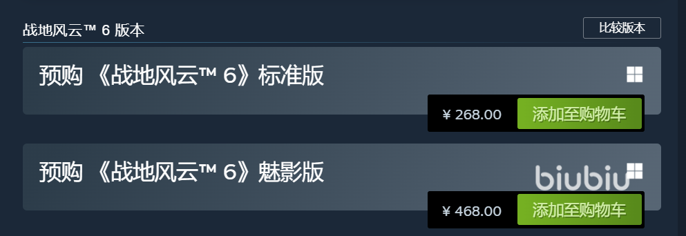 战地6在Steam和Epic平台同步发布双版本,标准版268元人民币,包含游戏本体及专属预购奖励,内含士兵外观和武器配件等内容。魅影版468元人民币,在标准版基础上追加第一赛季战斗通行证+25级跳级、4套精英士兵皮肤及多款定制武器涂装与载具皮肤,一步直达赛季核心内容。