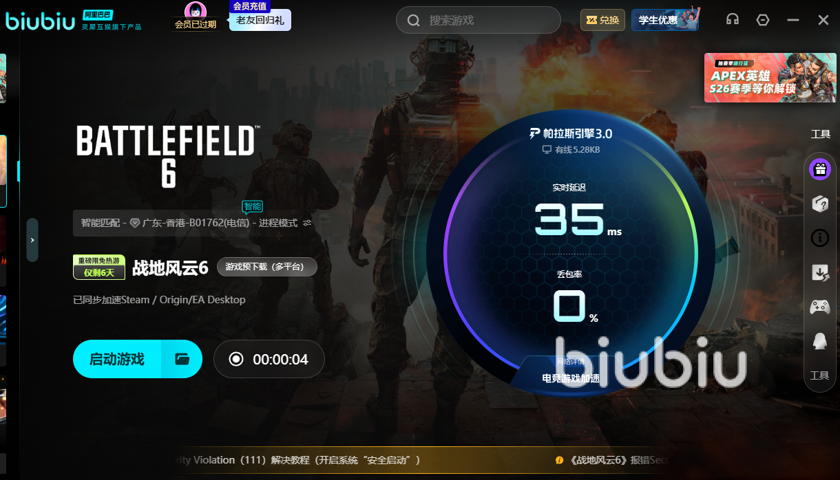 战地6下载慢提速办法现在各位应该学会了,使用biubiu优化网络之后,就能快速完成下载安装步骤了。这次的测试活动是有期限的,得到了名额就赶紧使用,好好享受开放的地图以及玩法内容。后续正式版本上线之后,用上biubiu就可以长时间无顾忌的进行挑战。