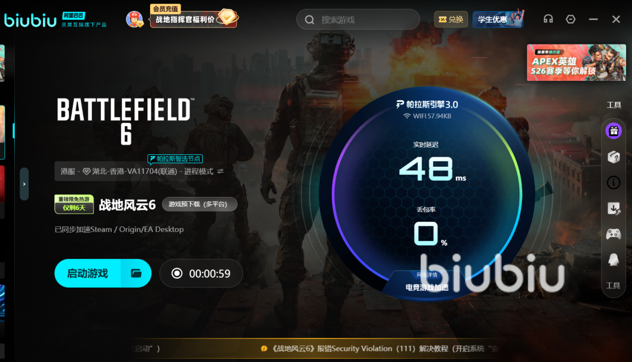 近期,biubiu与电竞选手Aixleft(小叮当)合作,推出帕拉斯引擎3.0智能加速平台,专门针对战地6等高负荷、高要求的游戏环境进行了优化升级。能精准识别并规避常见的网络问题,显著提升对局时的整体连接流畅度与稳定性,扫平网络障碍。