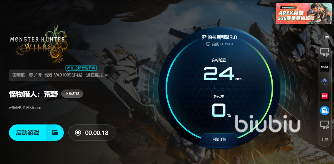 考虑到像怪物猎人荒野这样的游戏还有很多,且游戏制作技术也在日益提升,所以biubiu一直以来也在坚持,不断的进行技术提升,最近更是寻找了超人气冠军选手Aixleft一起合作实验带来了最新的帕拉斯引擎3.0系列,保障玩家的提速服务。