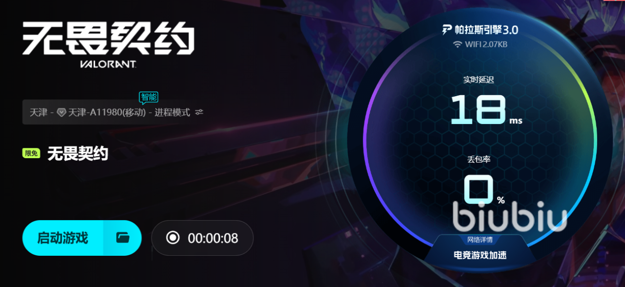 为了让玩家在《无畏契约》中保持良好的竞技状态,biubiu加速器进行了全面的技术升级。其引入的帕拉斯引擎3.0是一套经过反复打磨的优化方案,能够更加高效地优化数据传输路径结构,减少中间环节带来的波动,让网络传输更加高效顺畅。此外,biubiu还与职业冠军选手Aixleft展开深度合作,将高水平选手的实战需求融入到产品优化过程中,使其在实际对战环境下能够提供更接近赛事级别的网络支持,让玩家感受到接近职业比赛的操作体验。