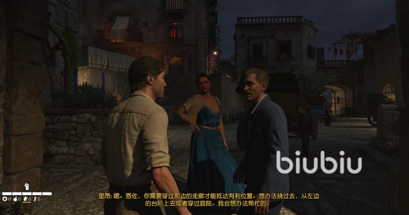 里昂让恩佐走过那边的走廊以获取最佳拍照位置。需要潜入,这里的房间可以搜刮一下,拍照注意调一下清晰度,会有对焦提示。拍好后交给里昂任务结束,回家。