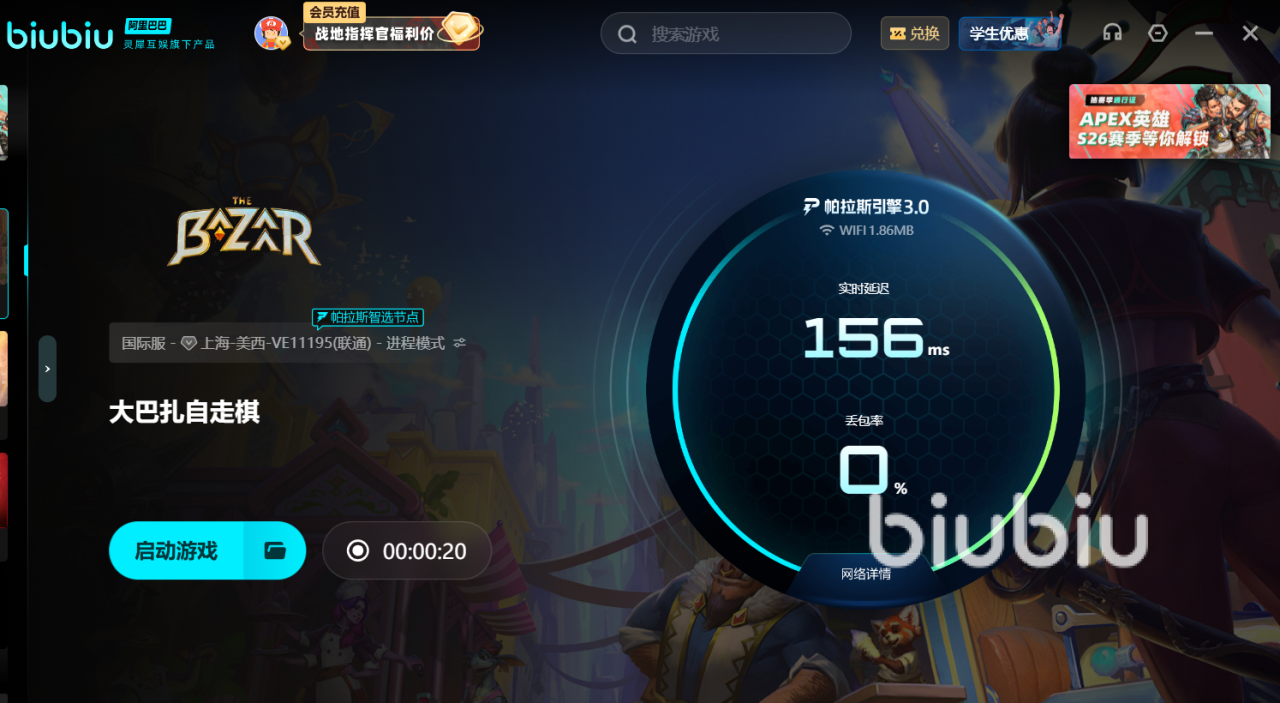 对于因网络问题导致的闪退,biubiu加速器无疑是TheBazaar玩家的最佳拍档,其搭载的核心加速模块能精准识别并保障游戏进程的网络带宽优先权。近期,与冠军选手Aixleft合作,重磅升级帕拉斯引擎3.0,进一步提升了针对大型在线游戏的智能优化能力,显著提升对抗时流畅度。