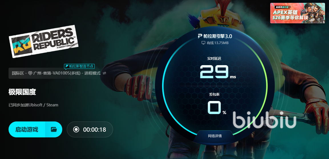 由于它是育碧旗下的作品,本身的服务器对于各位的网络方面要求就比较的高,若是出现带宽不稳定,或者是延迟很高的问题,那么就非常容易遇到中断传输的情况,导致大家的进度卡在50%,而想要解决这一难题,还要打开biubiu,这款赛事级加速工具在帮助用户稳定网络方面还是很轻松的,并且整体的性能表现出色。