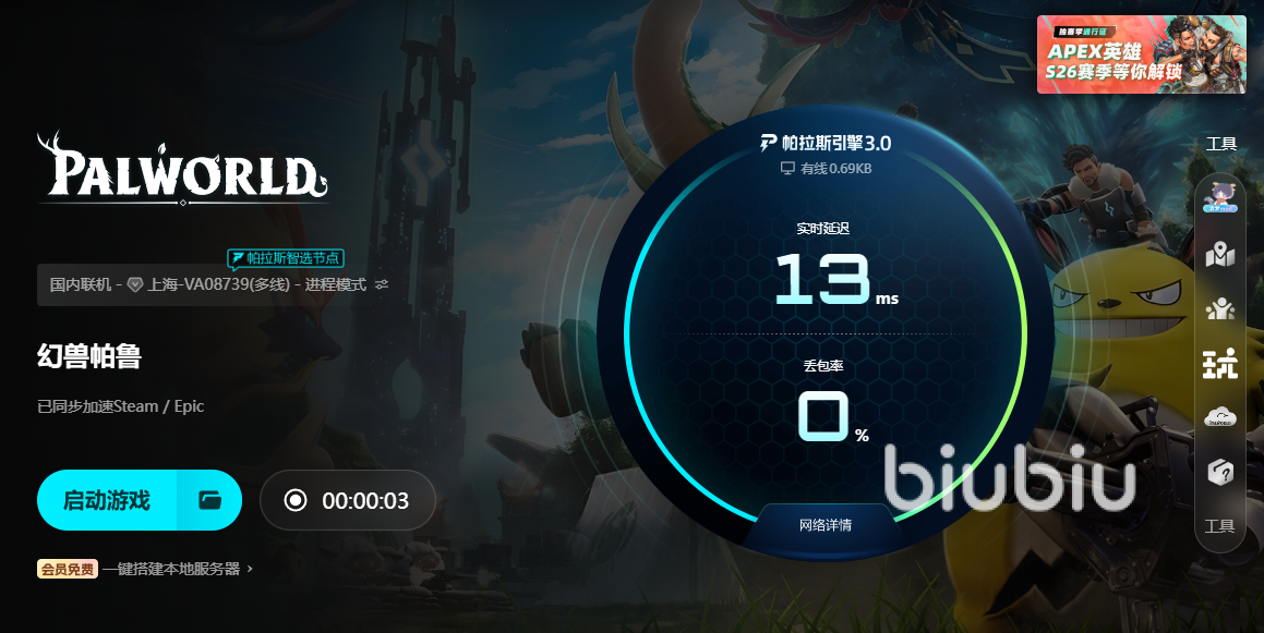 以上就是小编整理的幻兽帕鲁进不去服务器怎么办内容,总体而言,对于一些服务器不在国内部署的游戏来说,遇到进不去的问题并不罕见,而且还有卡顿、延迟甚至闪退问题,其实质还是因为网络不稳定,而biubiu加速器对这些问题都能很好解决,同时还有提前预防的作用。