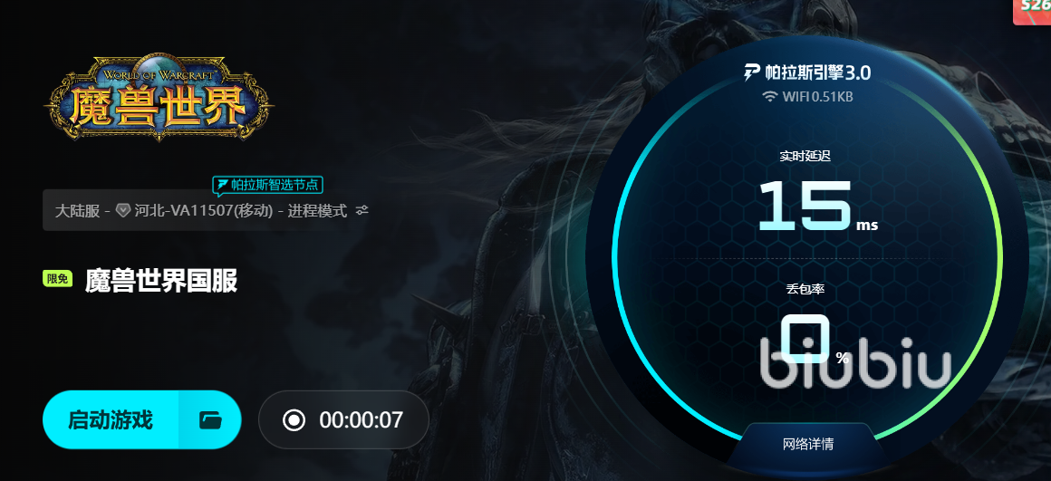 biubiu加速器的技术方案能从传输层面根治延迟问题。新注册用户可获得24小时免费加速,足够在不同时段测试团本和战场的延迟变化;输入口令【biubiu不卡顿】还能额外兑换72小时,合计96小时的体验期,覆盖从日常任务到团队活动的全场景。其搭载的帕拉斯引擎3.0采用动态路由优化技术,在连接魔兽世界服务器时,会实时监测各节点负载,自动选择最优传输路径,将跨区延迟从200ms压缩至60ms以内。与冠军选手Aixleft合作优化的“团战加速模式”,进一步提升了数据优先级——在25人团本的技能密集期,引擎会将治疗、减伤等关键指令标记为最高优先级,确保在网络波动时核心操作不受影响。