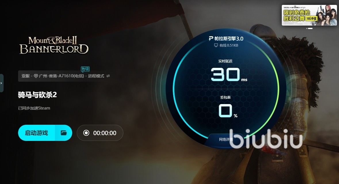 以上就是小编整理的“骑马与砍杀2闪退解决办法”全部内容,总体而言,大家最怕的闪退、延迟、掉帧的问题,biubiu加速器都可以轻松解决,但是,预防问题比解决问题更重要,而拥有智能技术,网络监测能力的biubiu加速器,恰好可以帮助大家提前预防问题的发生,避免游戏发生问题,所以打开游戏前通过biubiu启动游戏效果更好哦!