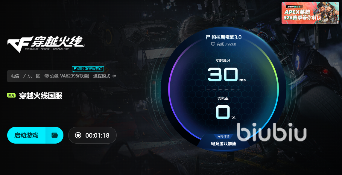 好了,上述便是cf更新后闪退的全部内容了,广大小伙伴们在实际的体验过程中,若是有遇到延迟很高,或者是经常发生掉帧等方面的问题,那么打开biubiu来帮自己就很合适,这样就能让自身在射击战斗中能更加稳定。