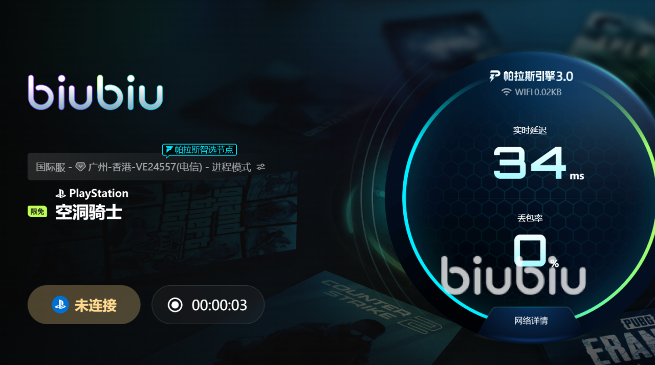 biubiu加速器凭借其前沿技术,成为空洞骑士玩家们的秘密武器。这次升级引入了帕拉斯引擎3.0,内置智能优化算法与动态节点切换系统,无论身处何种网络环境,都能自动锁定最佳加速线路,让延迟降到最低,丢包几乎消失。对于这类操作密集、反应要求极高的游戏,biubiu能够让每一次跳跃乃至惊险战斗都顺滑无阻,像开挂般畅快。更妙的是,它还联合电竞冠军Aixleft进行深度调校,精准匹配玩家实际操作需求,极大提升游戏响应速度与操作手感。