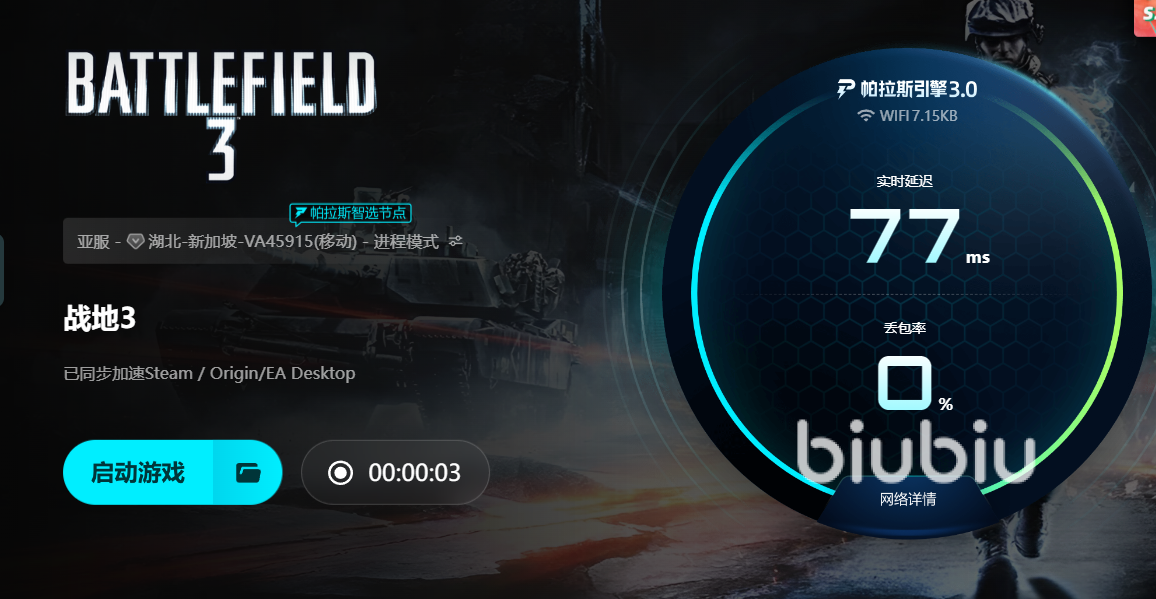 《战地3》的魅力,在于宏大战场里的协作与对抗——驾驶战机俯冲轰炸,操控坦克突破防线,这些体验容不得加载失败来打断。biubiu加速器的价值,正在于它能弥合新老环境的鸿沟,让十年前的经典游戏在如今的网络和系统里依然流畅运行。当登录不再卡顿,地图加载顺利,玩家才能真正回到那些惊心动魄的战场,享受射击游戏最本真的快乐。毕竟对老玩家来说,能顺利进入游戏,和队友再打一场,就是最好的回忆。