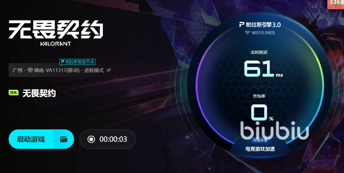 对于受困于闪退的玩家,biubiu的免费体验机制足够友好。新用户注册即可获得24小时免费加速时长,足够完成从客户端验证到多场对局的完整测试;输入专属口令【biubiu不卡顿】,还能额外兑换72小时时长,合计96小时的体验期能覆盖不同时段的网络环境。操作也极为简便:下载安装后,在搜索栏找到“无畏契约”点击“开始加速”,系统会自动完成节点匹配与协议适配,无需手动调整路由器或防火墙设置。许多玩家反馈,使用加速器后,进入对局的成功率从原先的65%提升至98%,“裂空”地图的加载闪退从场均2次降至每周1次,技能释放的响应速度明显提升,尤其是在关键的据点攻防中,再也不用担心因延迟错过最佳射击时机。