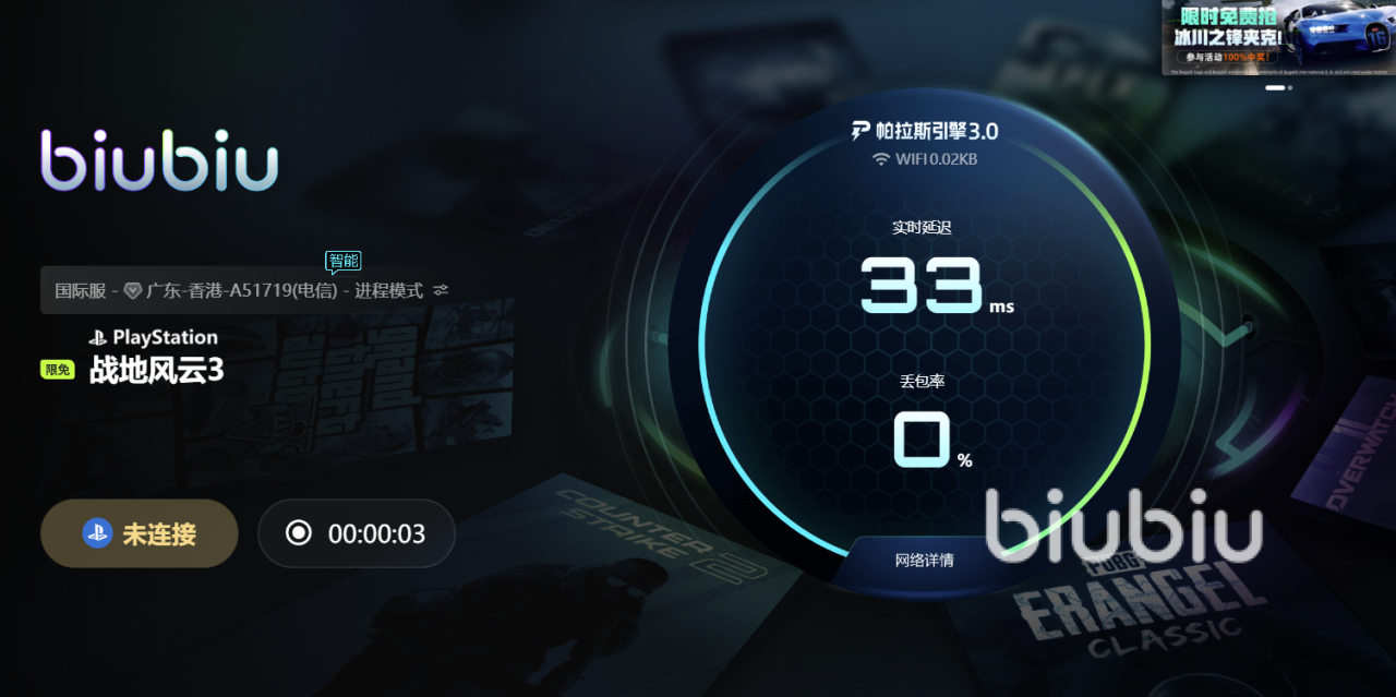 编辑好战地3名称,点击“加速”按钮,自动完成节点连接与网络优化,无需复杂设置。整个过程快速流畅,不会耽误大家太多的时间,新手伙伴也是能够轻松玩转的。启动之后会发现不仅能显著提升进入游戏的速度,还能在对战过程中保持低延迟、高稳定的网络状态,避免关键时刻因掉线而影响战局。