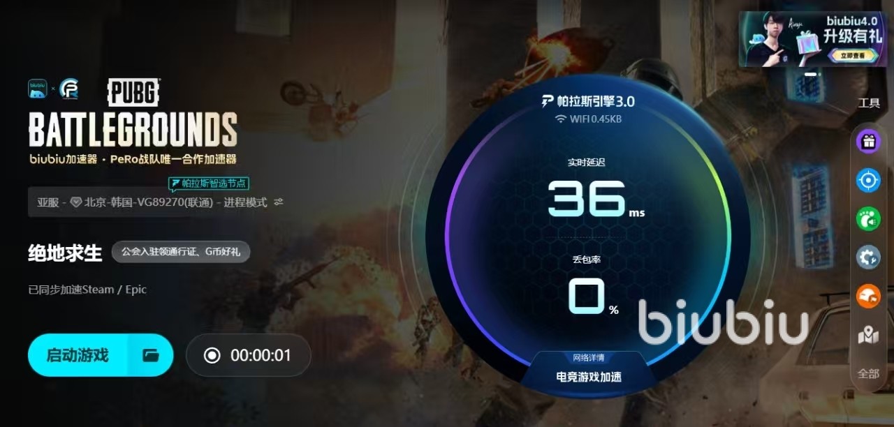 玩《绝地求生》时,不少玩家会遇到一碰到敌人就掉帧的情况,这背后网络的影响可不能忽略,biubiu加速器恰好能帮玩家营造稳定的网络条件,新用户注册后,能直接拿到24小时的免费使用时间,要是输入【biubiu不卡顿】,还能再换72小时免费时长,让大家不用花钱就能感受它的加速效果,这款加速器这次有不小的升级,不仅搭载了全新的帕拉斯引擎3.0,还联合冠军选手Aixleft共同打磨优化。它能智能规划网络数据的传输路线,降低数据丢失和延迟波动的概率,让游戏数据和画面呈现保持同步,让玩家在和敌人正面交锋时,能够保证网络顺畅不卡顿,画面帧率也能稳定流畅。