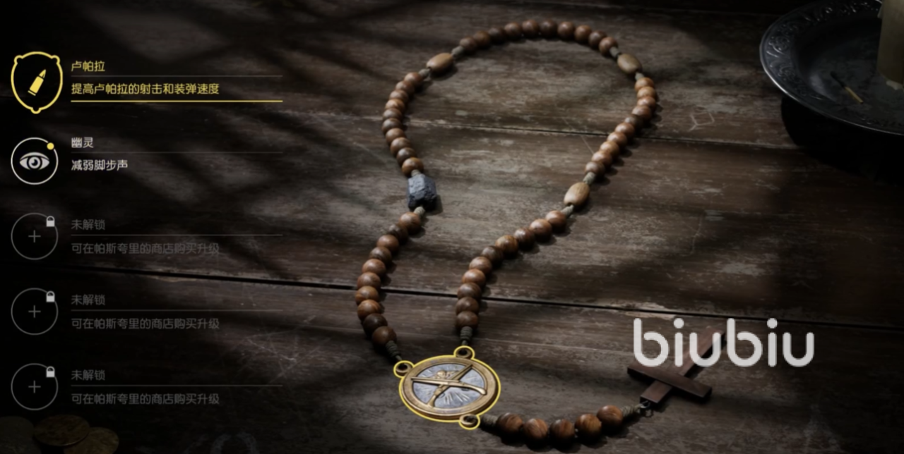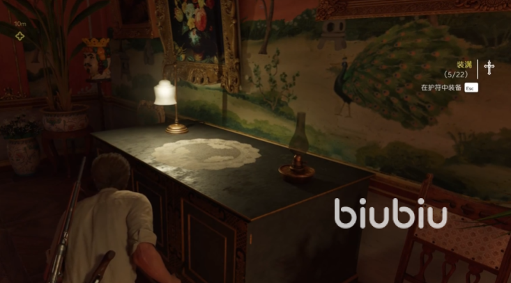 前面剧情正常走,到达卢多维奇的庄园时,先在外侧蹲守,等夜晚降临再一个个暗算守卫潜入到庄园的建筑物当中。一路走到主楼,进入卢多维奇的书房,这里有很多东西可以获取,进去里面一点的位置,在这看到有个绿色柜面的箱子,上面放了个白色台灯,旁边还有个雕像,交互拿走上面的道具就能得到护符幽灵,佩戴可减弱脚步声,同时能完成成就。