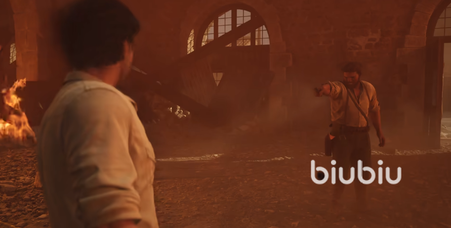 终于来到了二楼工头的办公室里,恩佐找到了中枪躺在地上已经奄奄一息的洛伦泽蒂,他告诉恩佐是斯帕达罗胁迫他关闭了工厂,他们想榨干丰塔内拉,之后就噶了。恩佐刚准备走,黑鸟却来了,真是冤家路窄,黑鸟就在这里故意等他的。黑鸟开始放火,想要将他困死在这里。
