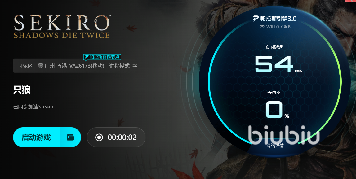 在网络方面,《只狼》虽然是单机游戏,但在某些平台的运行中仍需要联网验证和数据同步,若网络波动严重,也可能在加载和场景切换时出现短暂卡顿。这时,使用biubiu能够有效降低延迟和减少丢包率,让游戏的加载过程和联网验证更加顺畅。
