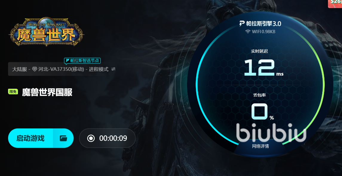 除了网络优化,biubiu加速器在技术层面也进行了深度优化。它与冠军选手Aixleft合作,引入帕拉斯引擎3.0,通过智能调度数据通道,有效降低了数据包丢失和延迟波动的情况。对于魔兽世界这样的大型在线游戏而言,这意味着无论是在国内服务器还是跨区匹配国外服务器,玩家都能获得较为稳定的连接,从而减少因延迟导致的画面卡顿或动作延迟问题,让游戏体验更加顺畅自然。