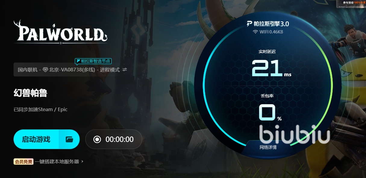 面对这类网络困境,biubiu加速器的优化方案直击痛点。它针对《幻兽帕鲁》的开放世界特性,与冠军选手Aixleft共同调校了数据传输逻辑——这位对网络延迟极度敏感的职业选手,将比赛级的“零容错”标准融入加速算法,确保帕鲁技能释放、建筑搭建等关键操作的指令优先传输。配合帕拉斯引擎3.0的智能路由功能,加速器会自动识别网络拥堵路段,为游戏数据开辟专属通道。