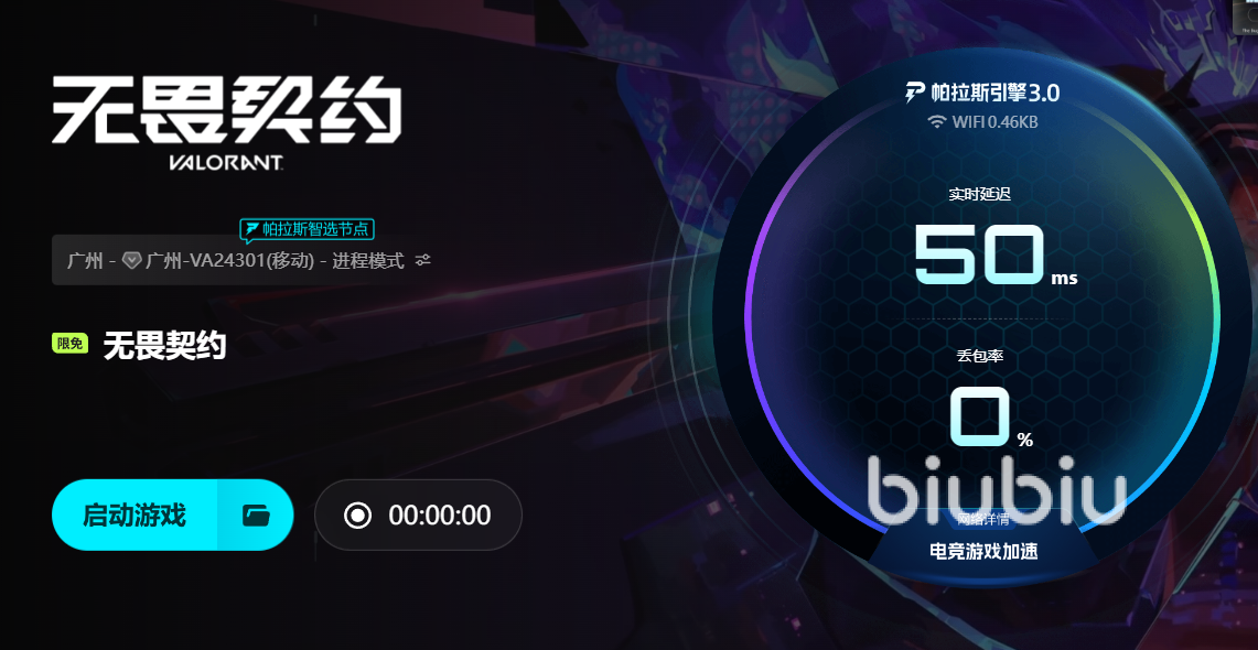 更实用的是,输入口令【biubiu不卡顿】,还能兑换72小时免费时长。这底气来自它和冠军选手Aixleft合作优化的帕拉斯引擎3.0——简单说,这引擎就像个“游戏管家”,能提前识别《无畏契约》的启动流程,把可能导致黑屏的“冲突进程”悄悄屏蔽,给游戏腾出“专属空间”。
