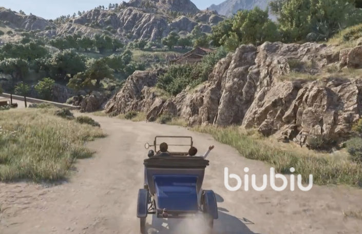 4、探索模式当中,托里西庄园西边的山丘上,沿着大路前进,可以看到独栋的房子,然后从右侧爬墙往山丘小路走,就能在山顶看到一个隐藏观景台,注意拍下右侧的景色。