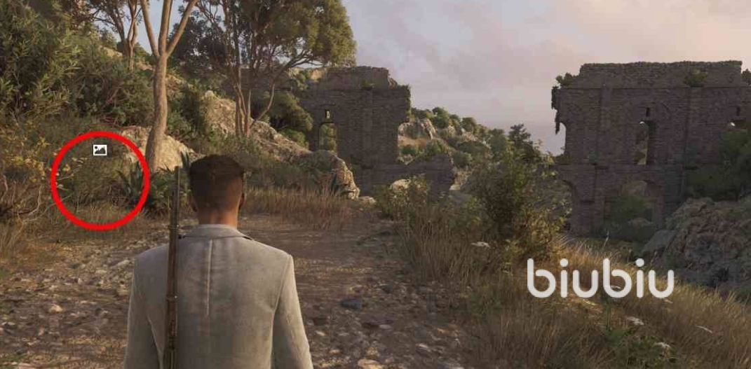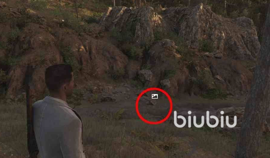 10、古岸遗址传送点东北处有个废墟,从道路上进入废墟就能看到照片图标,走过去后拍照即可。