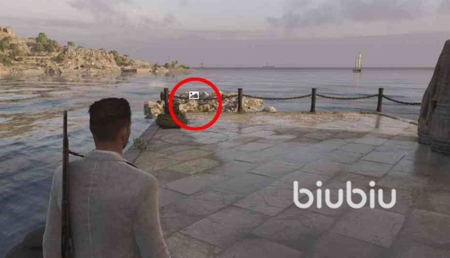 1、第4章男爵任务当中,我们跟伊莎贝拉一起站上观景台,完成对话就会解锁相机,注意拖动远近和调焦,然后拍照自动获得一张。