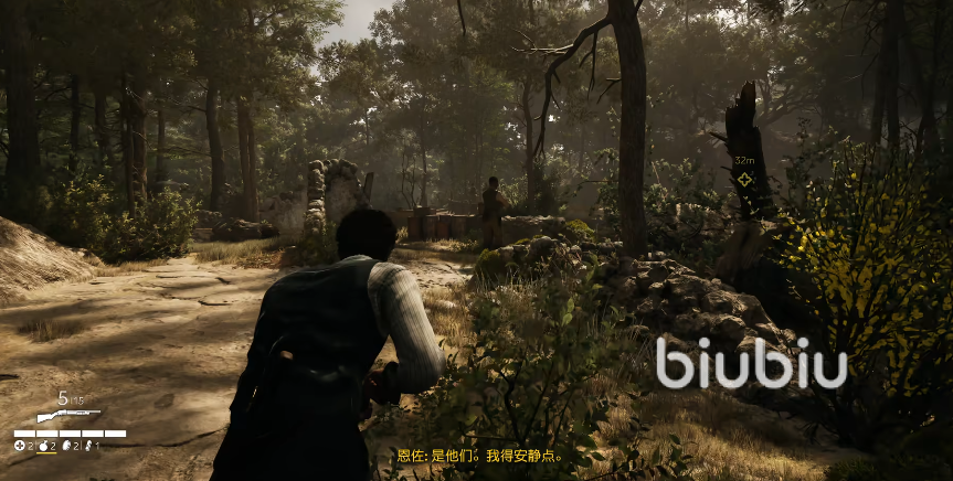 接下来跑进旁边的小路内,不远处有大树拦路,需要蹲下步行过去,很快发现营地,开始枪战。解决完所有人来到后山(最后一个就是马佐内,还有一封马佐内的信,想要逃去美国,收集信件可不要落下这个位置),这里有匹马,骑上去找切萨雷。