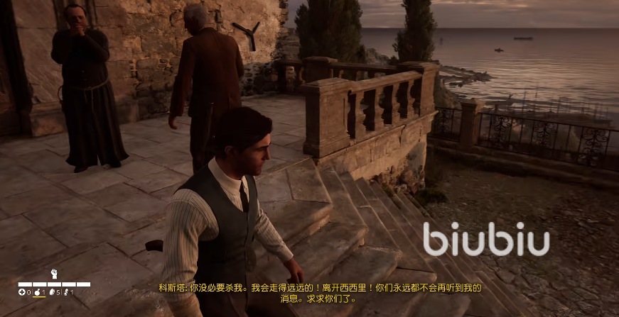 最后追到一个有风车的房子,继续枪战,打完后去教堂与蒂诺汇合。这里剩下的人是被神父庇护的,神父为托里西效忠多年。他很无奈但并不想看到流血事件。最后一人的科斯塔走出来投降,请求他们放过他,他有家人,只想要带着家人离开。