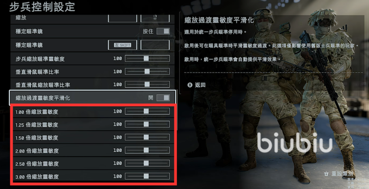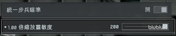 忽略倍镜独立设置:不修改任何灰显的倍镜灵敏度或过渡选项。