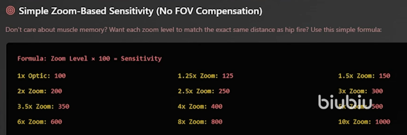 然后,手动设置倍镜灵敏度:使用灵敏度转换工具(如Mouse-Sensitivity.com),输入当前FOV和基础灵敏度,生成各倍镜推荐值。参考社区方案(例:1.25x灵敏度100,8x灵敏度80-90)。