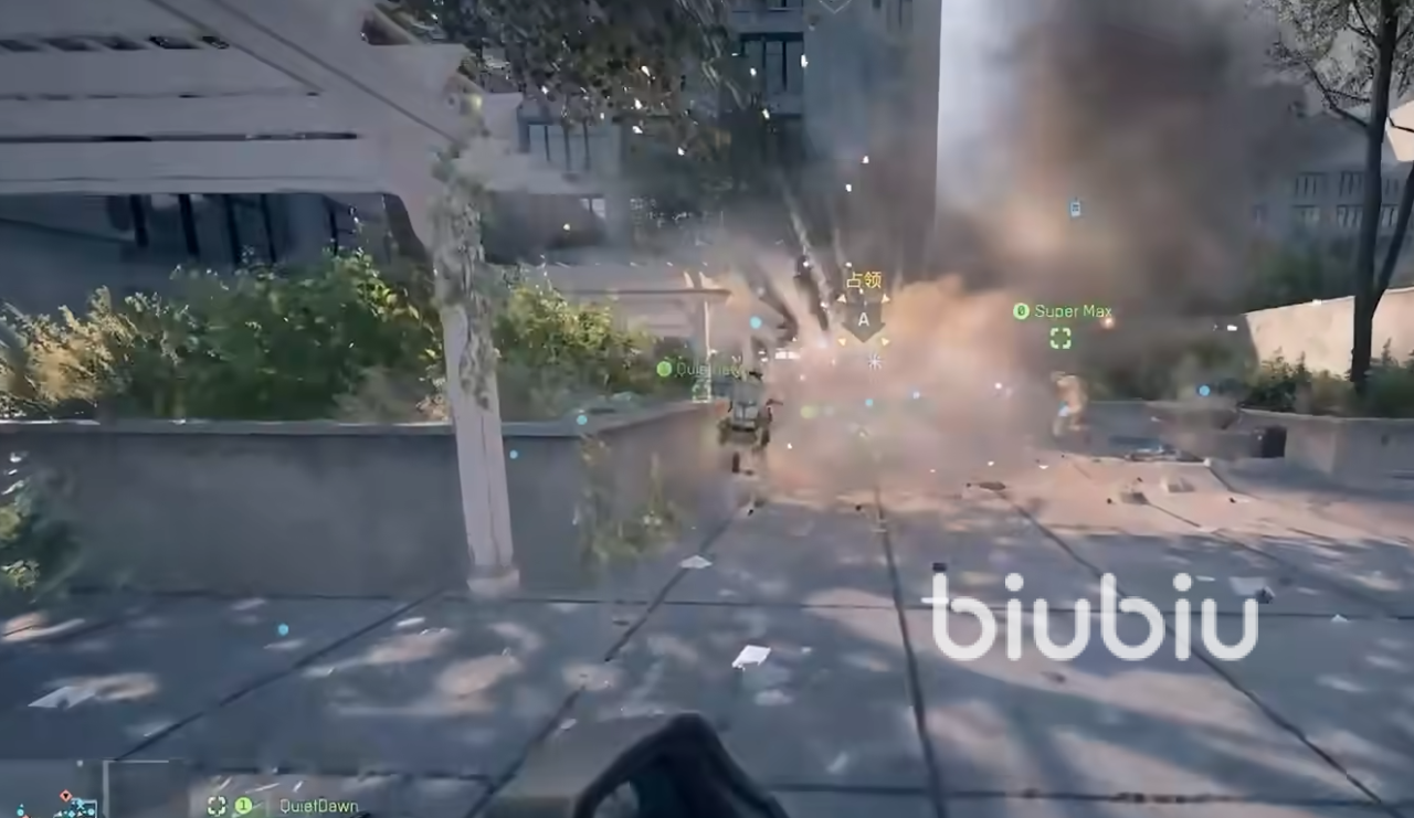 咖啡厅与公交车炸弹点需控制相邻建筑窗口。突击兵炸穿楼板制造垂直打击孔洞,压制敌方增援路径。