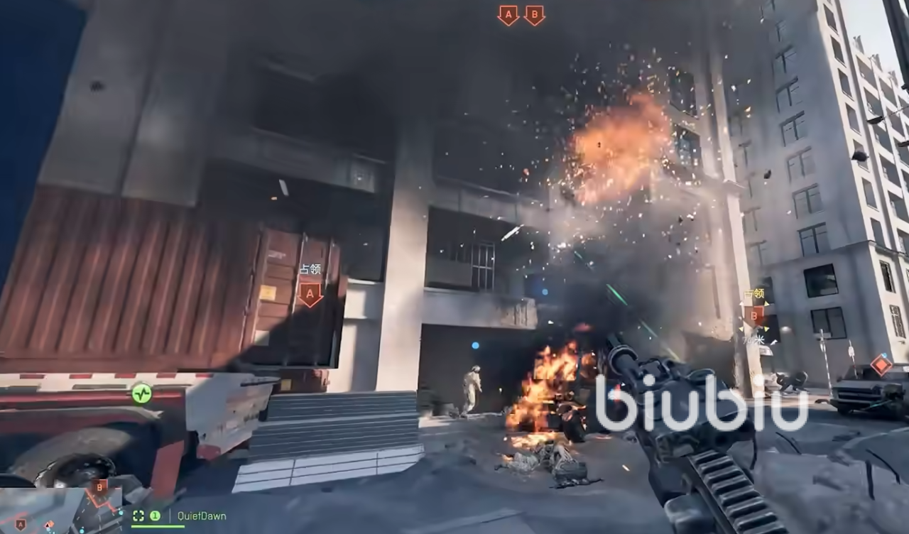喷子统治近战:霰弹枪(如M87A1)在10-30米内具备秒杀能力,狭窄巷道与室内环境进一步放大其优势,中远距离武器难以反制。而突击步枪(如B36A4)仅能在中距离窗口架枪,但需依赖掩体规避喷子突袭。