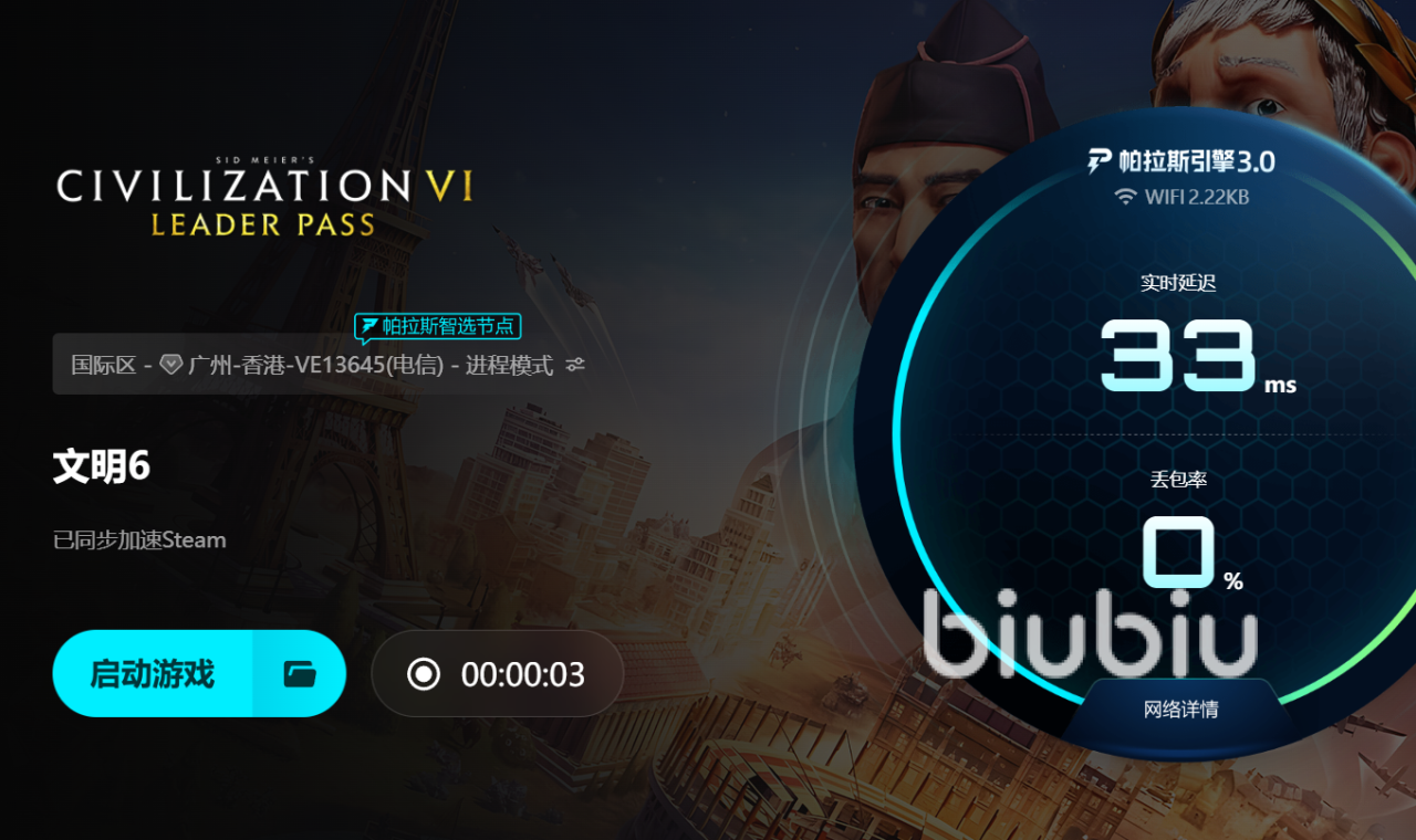 2025年08月19日 14:58 来源:石化义铁壳昆当你正准备和好友组队开局,从史前小村一路发展到科技星辰大海,却突然卡在联机界面,这种尴尬就像你的城市被外星文明劫掠,策略和布局全被打断。文明6联机进不去游戏怎么办?很多时候,这都是网络延迟或连接不稳定导致的。biubiu加速器就是你的秘密武器,它能智能优化网络线路,降低延迟,让你顺利进入联机游戏。它支持跨区加速,让你和全球玩家轻松互动,避免掉线或进不去的尴尬。告别网络问题,你可以专心体验区域建造、科技发展、文化宗教多线发展以及热血战争,每一次决策都影响文明走向。biubiu加速器让你在文明6的脑洞策略之旅中畅玩无阻,从小屋开局到全球霸主,一切都顺滑精彩!