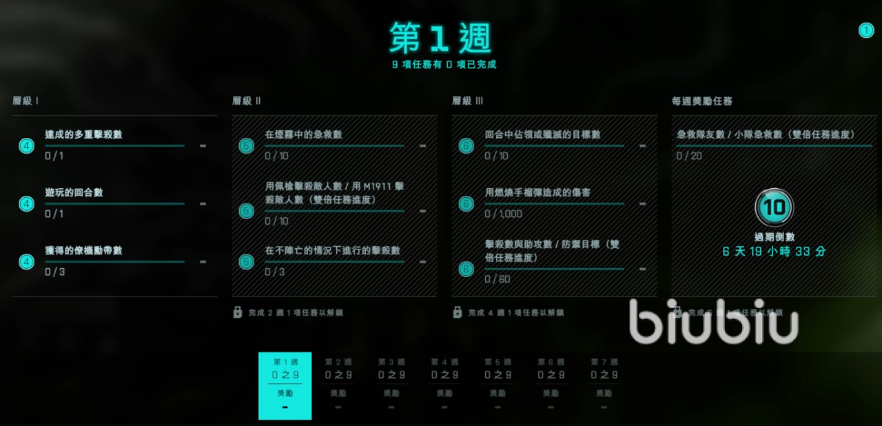 想要解锁的话需要完成每周任务: