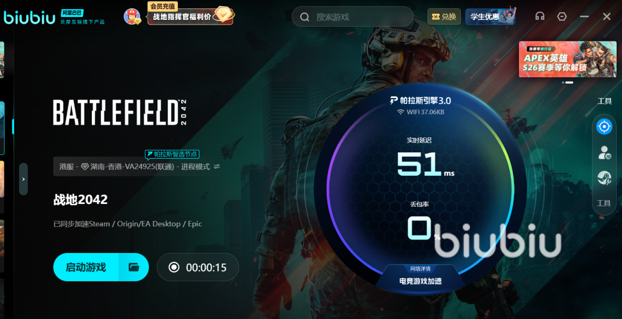 目前biubiu加速器更是迎来重磅升级,不仅与冠军AixLeft深度合作优化,更独家搭载帕拉斯智能引擎3.0,专为战地2042这类超大规模对战游戏打造的全新加速核心。此引擎通过智能网络诊断、毫秒级动态路由切换及深度流量优化,强力克服复杂网络环境下的常见网络顽疾。
