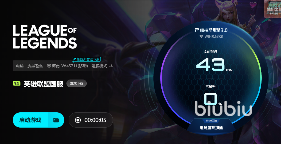 玩《英雄联盟》图的就是团队配合的爽感,是对线时精准补刀的成就感,是团战中技能衔接的默契。掉线重连不上的憋屈,比输了还让人窝火。你看着队友在前线厮杀,自己却卡在加载界面,想帮忙却插不上手,这种无力感太煎熬了。biubiu这类工具的意义,就是帮你把这种“憋屈”降到最低,让你更专注于对线的拉扯、团战的走位,而不是对着加载条叹气。通过合理使用biubiu加速器,配合自身的网络管理措施,玩家可以显著提高游戏启动的成功率,避免因网络问题卡在加载界面或者断连。